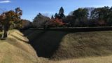 本丸跡。城の中心部で、土手に囲まれ敵から内部が見えないようになっている。