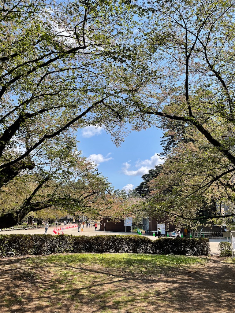 場内にある「桜のハート」、のはずでしたが、残念ながら葉桜になっていました。