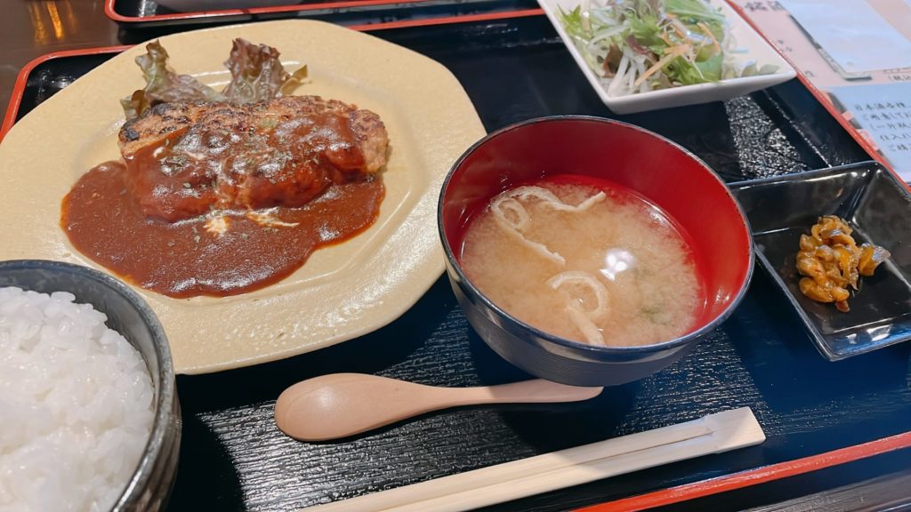 お腹も空いてきたので、一旦お城から出て近くの居酒屋さん「近江や 蔵」で昼食を。注文したのは近江牛和風ハンバーグ御膳と同じくデミグラスハンバーグ御膳。美味しくいただきました。