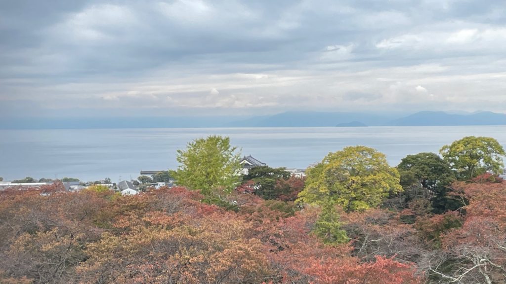 天守からの眺め。琵琶湖が対岸まで良く見えますね。