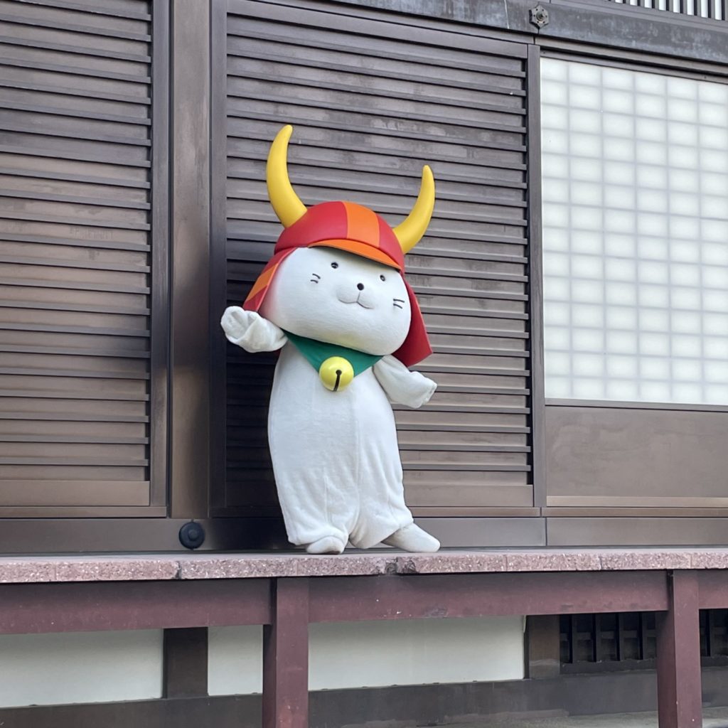 昼食後、今やゆるキャラとして全国でも有名な「ひこにゃん」のお出ましスケジュールに合わせて、再度彦根城へ。ちなみに、「ひこにゃん」は、彦根藩井伊家二代当主である井伊直孝公をお寺の門前で手招きして雷雨から救ったと伝えられる”招き猫”と、井伊軍団のシンボルとも言える赤備えの兜を合体させて生まれたキャラクターとのこと。(彦根市ホームページより)
