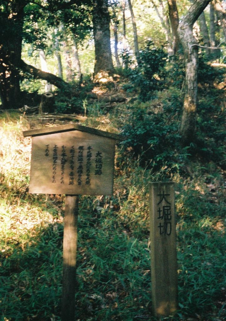 本丸とその上の中丸とを区切る大堀切跡。防御力を高めるために作られたものです。