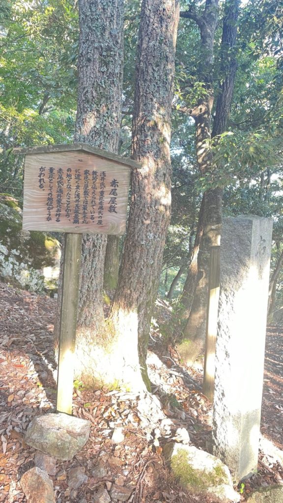 時間も結構遅くなってしまいましたが、「小谷城跡ガイド館 浅井三代の里」の駐車場に車を停めたところ、係の方に中腹までは車で行けると教えていただき、中腹駐車場まで登りました。下から登ったら結構大変ですね。駐車場からしばらく歩くと、小谷城の痕跡が現れ始めます。