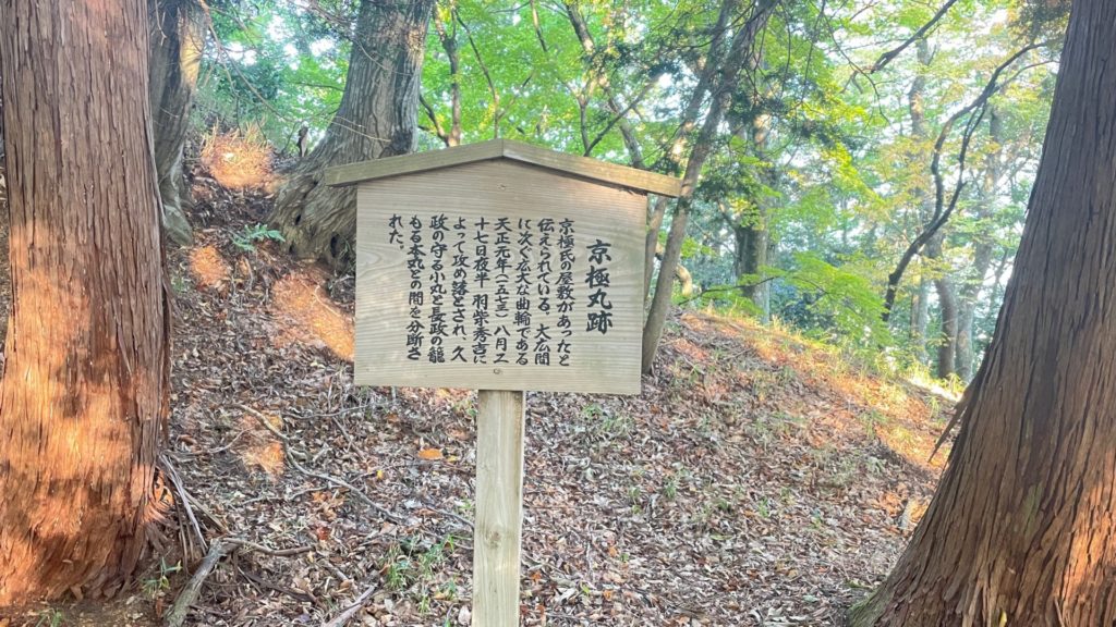 さらに進むと、京極丸跡があります。京極氏の屋敷があったところと伝えられており、天正元年(1573年)の小谷城の戦いにて羽柴秀吉に攻め落とされ、浅井久政の守る小丸と長政が籠もる本丸との間を分断されたそうです。
