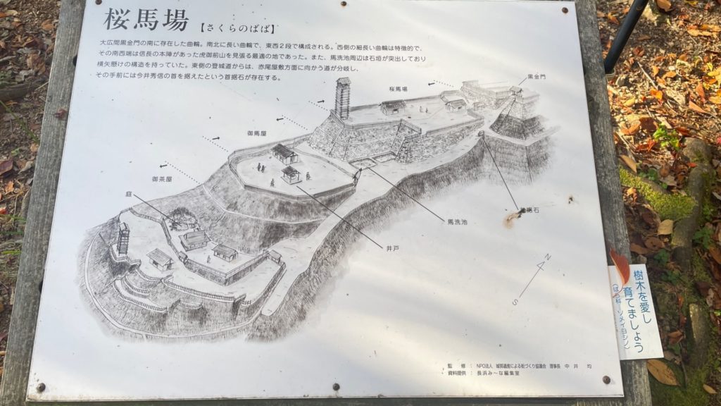 大広間黒金門の南に位置した「桜馬場」という曲輪の跡。その下には御馬屋や馬洗池などがあったようです。