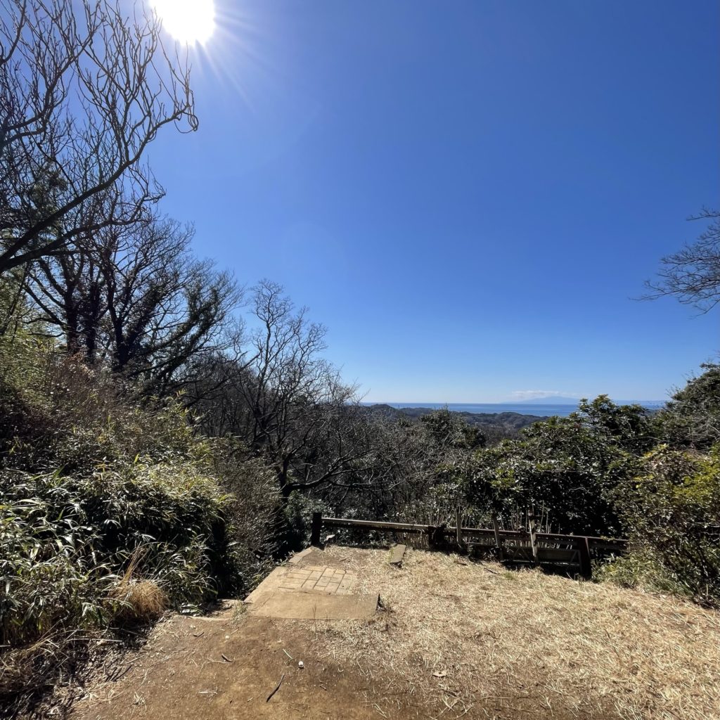しばらく歩くと、勝上献展望台に着きました。眼下に相模湾と遠くに伊豆半島や富士山もはっきりと見ることが出来る景色の良い展望台です。