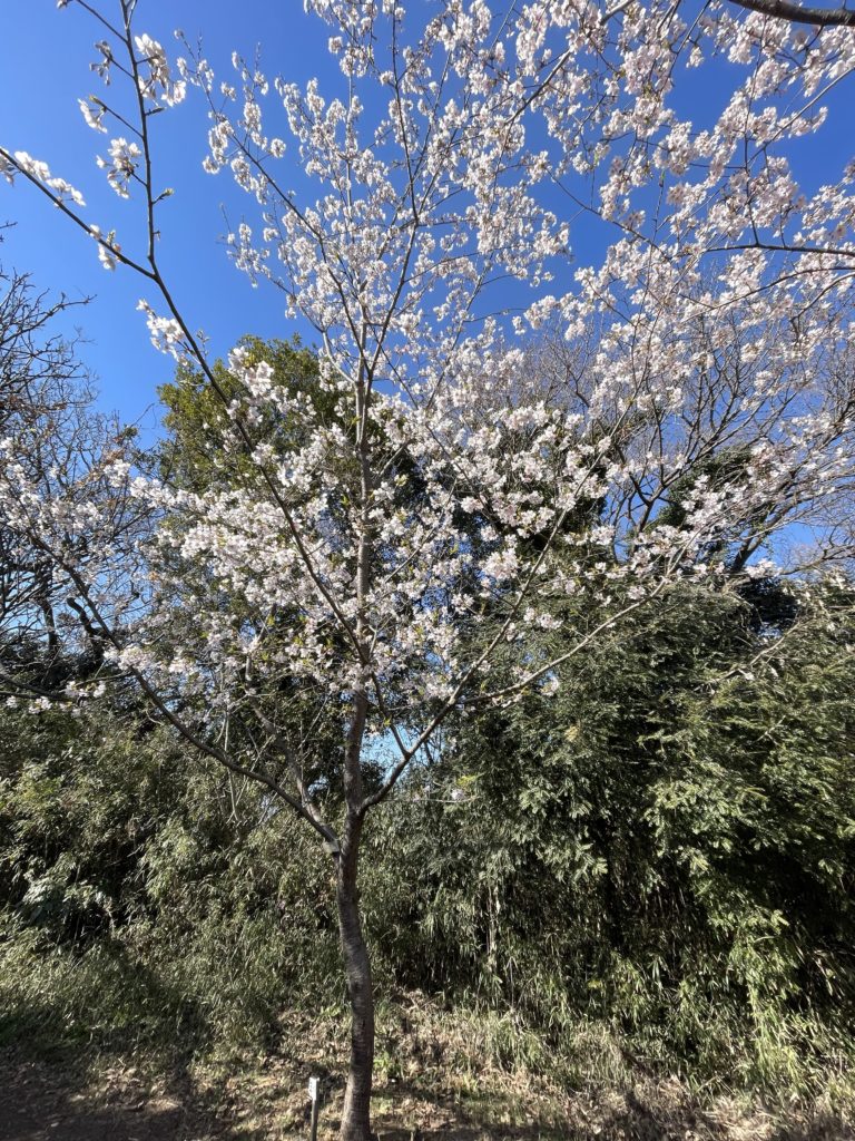 衣張山山頂では、早咲きの桜が満開になっていました。2月下旬に桜が見られるとは思いませんでしたが、思いがけずお花見ができました。