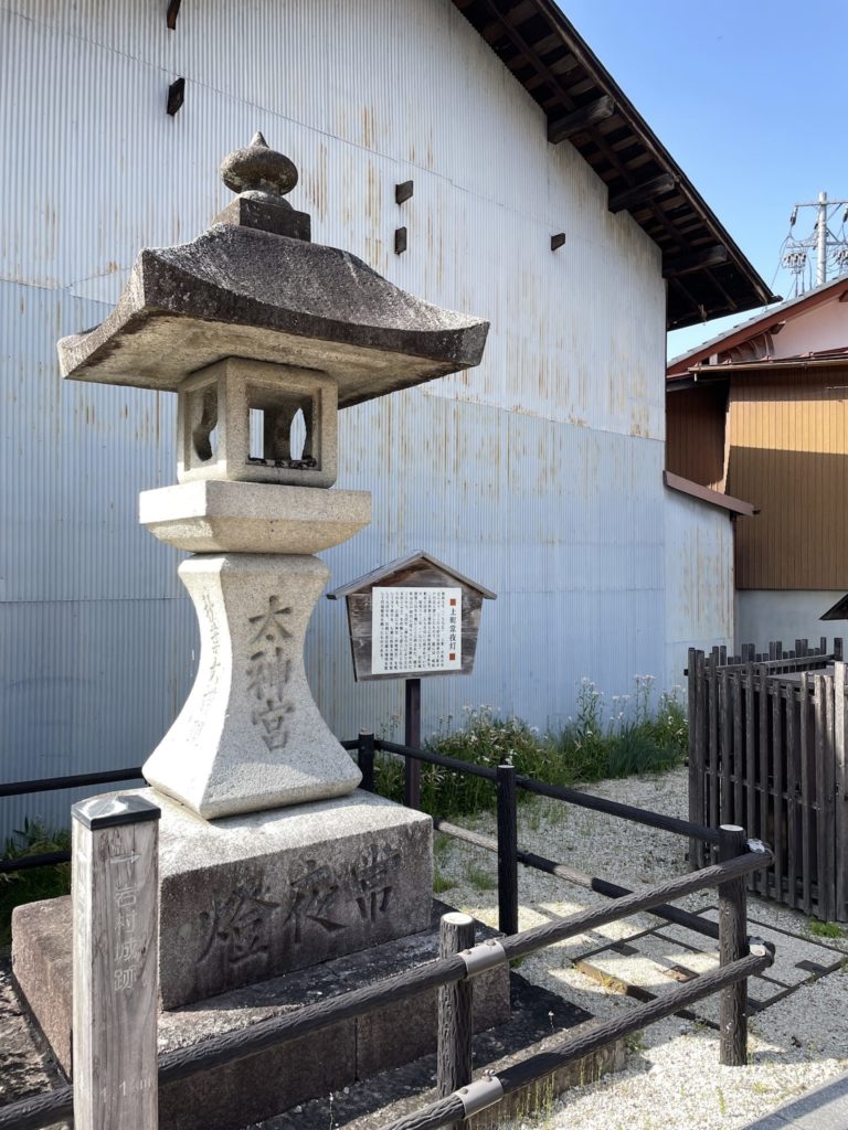 城下町のほぼ外れにある「上町常夜灯」。この先は午前中に登った岩村城跡へと続きます。