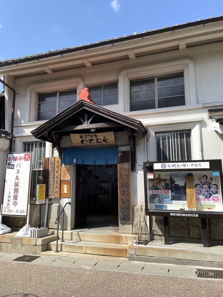 ここは「街並みふれあいの舘」(恵那市観光協会 岩村支部)。旧岩村銀行の建物を利用した洋風建築でおしゃれな感じです。ここでは岩村城の御城印なども販売されています。