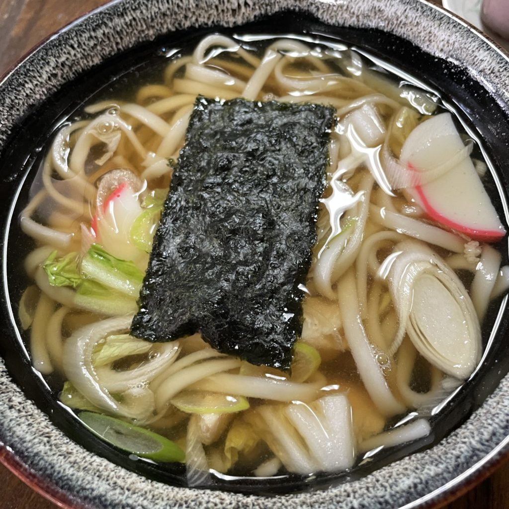 しの田うどんは、少し細めの柔らかい優しいうどんといった感じ。刻んだ油揚げと青ネギを散らしてかまぼこが添えられたうどんで、名古屋や岐阜のうどん屋では定番のメニューのようです。