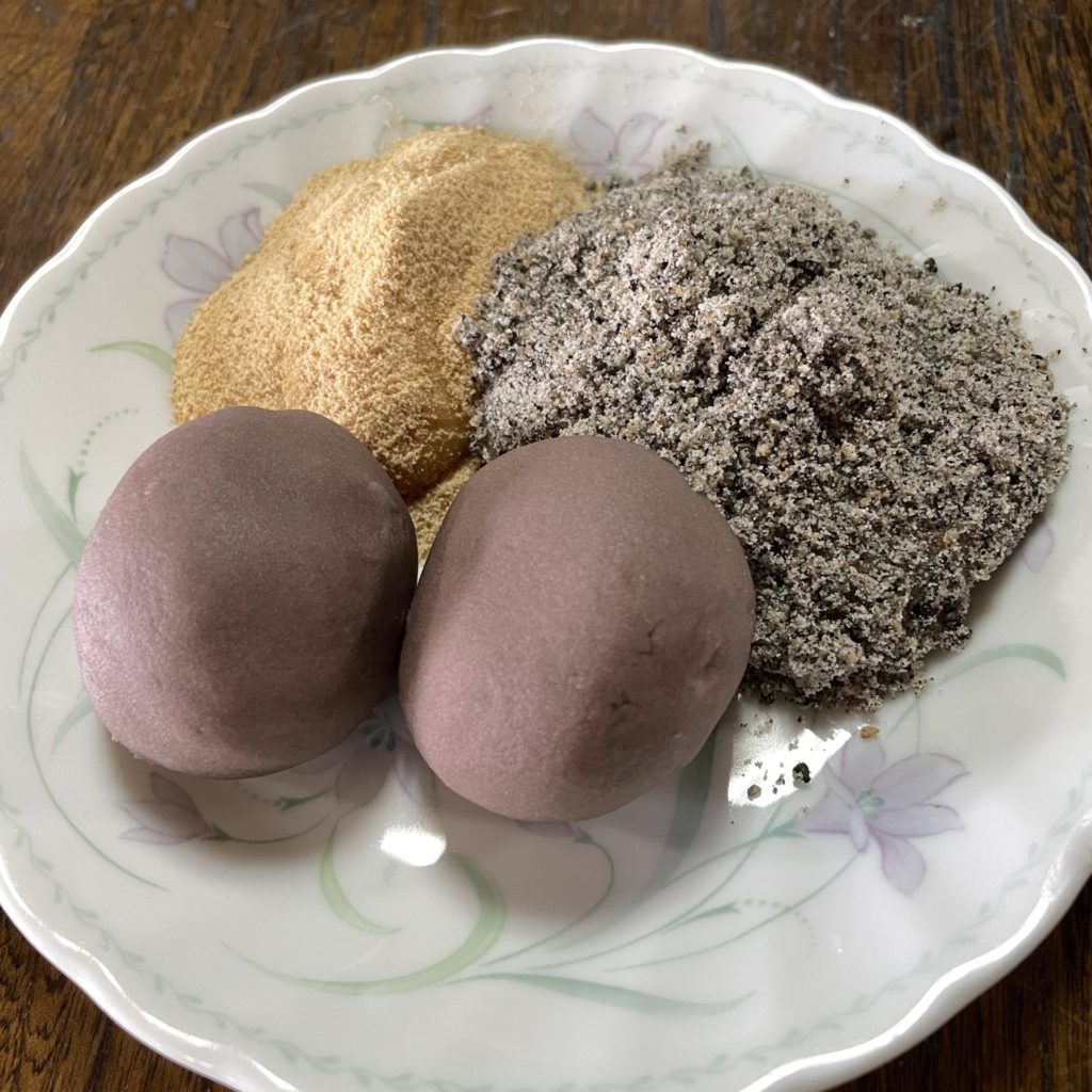 折角なので「かんから餅」を一皿頼んでみました。餡こと胡麻ときな粉の3種類のお餅がセットで450円。地元岩村町富田産の餅米を100%使用したお餅は柔らかくて何個でも食べられそう。