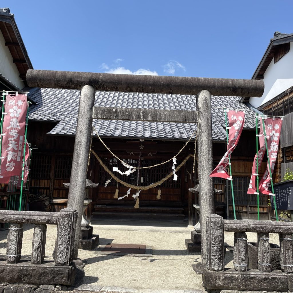 通り沿いにある「厳邑(いわむら)天満宮」は、古い町並みに馴染んでいます。江戸時代に岩村藩では学問が盛んで、太宰府天満宮(福岡県)から菅原道真の御霊を勧請したのが始まりだそうです。